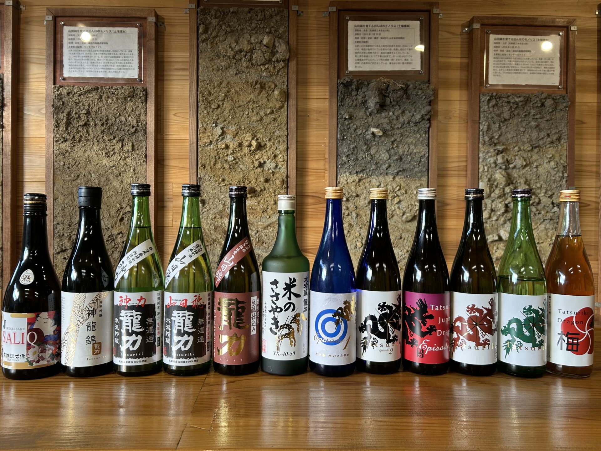 テロワールのこだわりを一人でも多くの飲み手に伝えたいと、こだわりの原料酒米を育む土壌標本(モノリス)に囲まれながら、自慢の銘酒を試飲・購入できる「龍力テロワール館」。